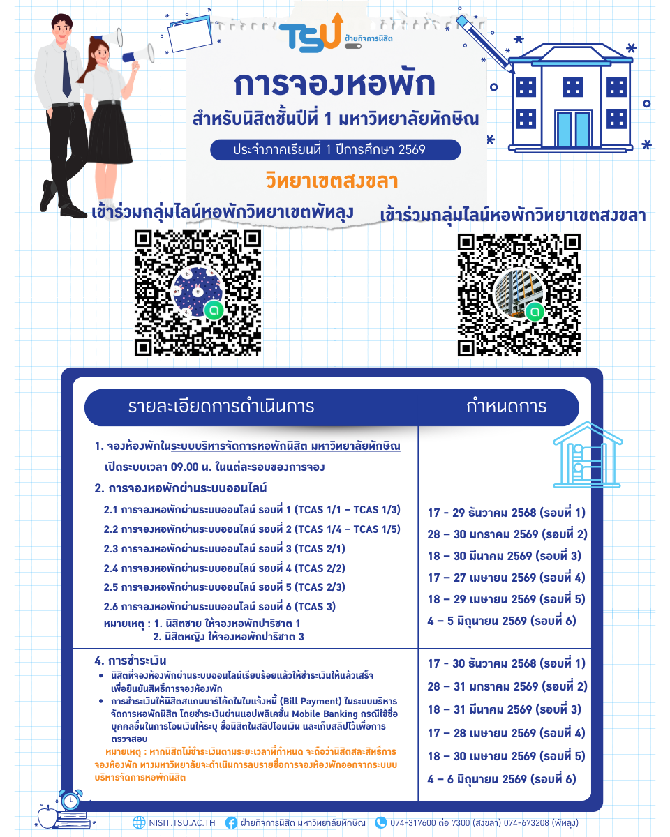 กำหนดการประชุมชี้แจง การขอผ่อนผันการเข้ารับราชการทหาร ประจำปีการศึกษา 2568 วิทยาเขตสงขลา