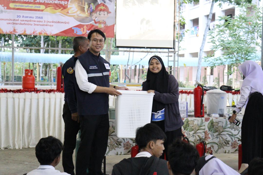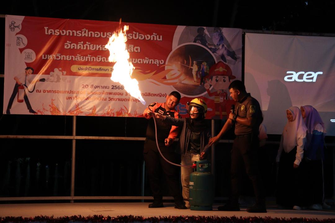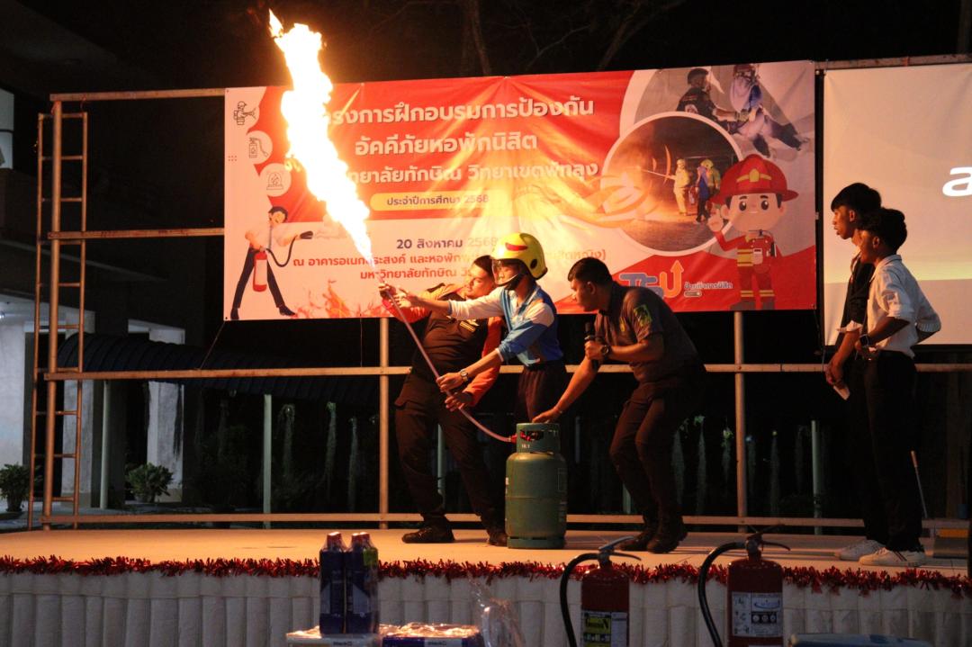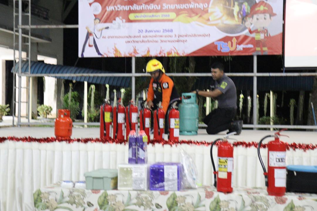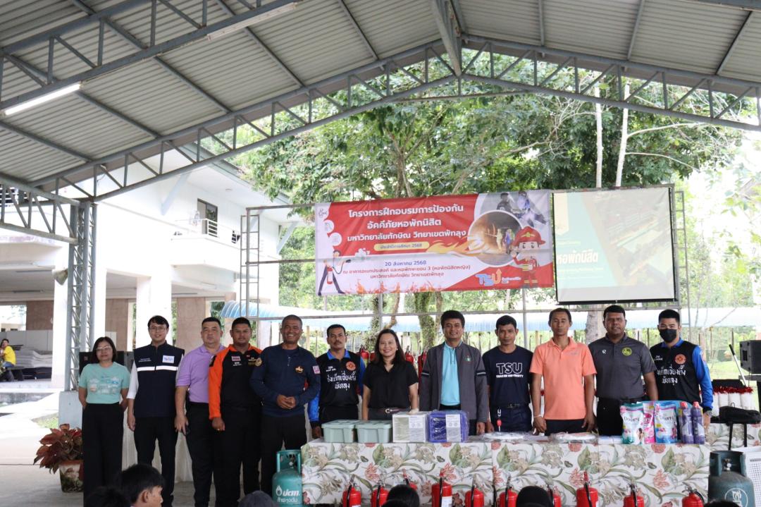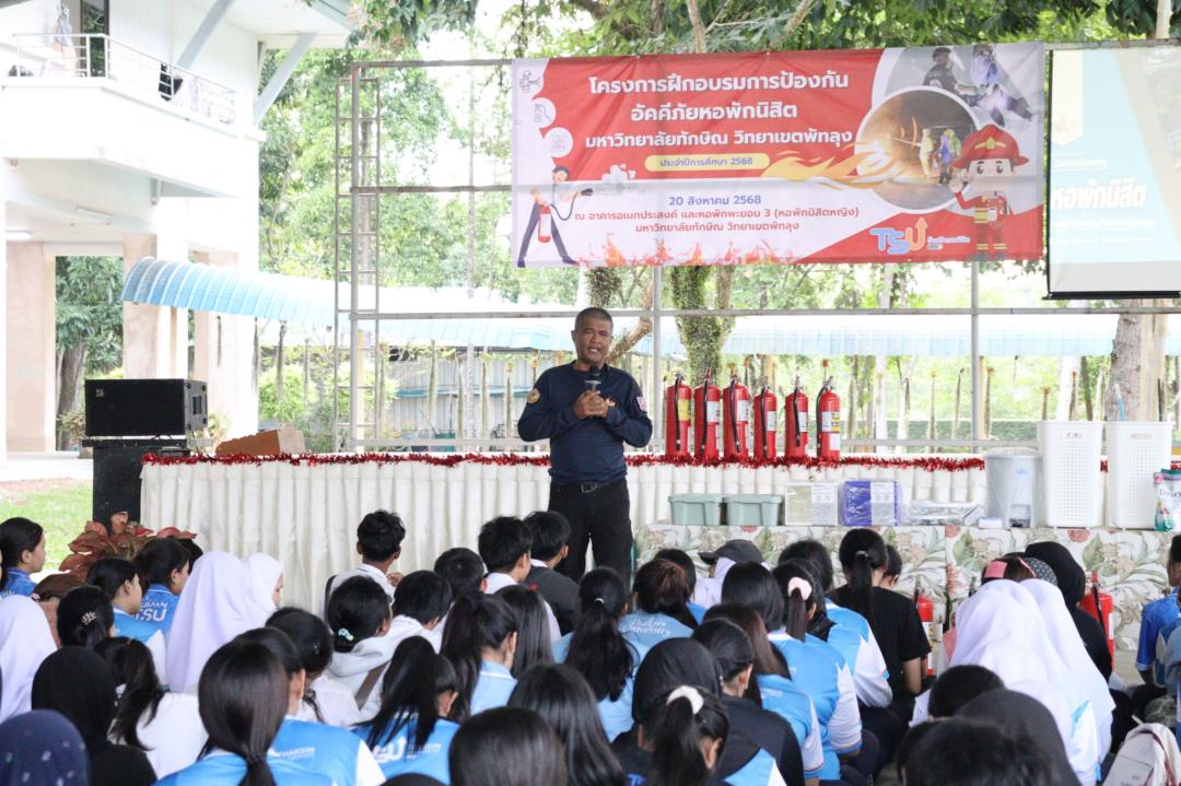 ภารกิจหอพัก กลุ่มภารกิจบริการและสวัสดิการนิสิต ฝ่ายกิจการนิสิต มหาวิทยาลัยทักษิณ จัดโครงการ “ฝึกอบรมการป้องกันอัคคีภัยนิสิตหอพัก ประจำปีการศึกษา 2568” วันพุธที่ 20 สิงหาคม 2568 ณ อาคารอเนกประสงค์ และหอพักพะยอม 3 (หอพักนิสิตหญิง) มหาวิทยาลัยทักษิณ วิทยาเขตพัทลุง