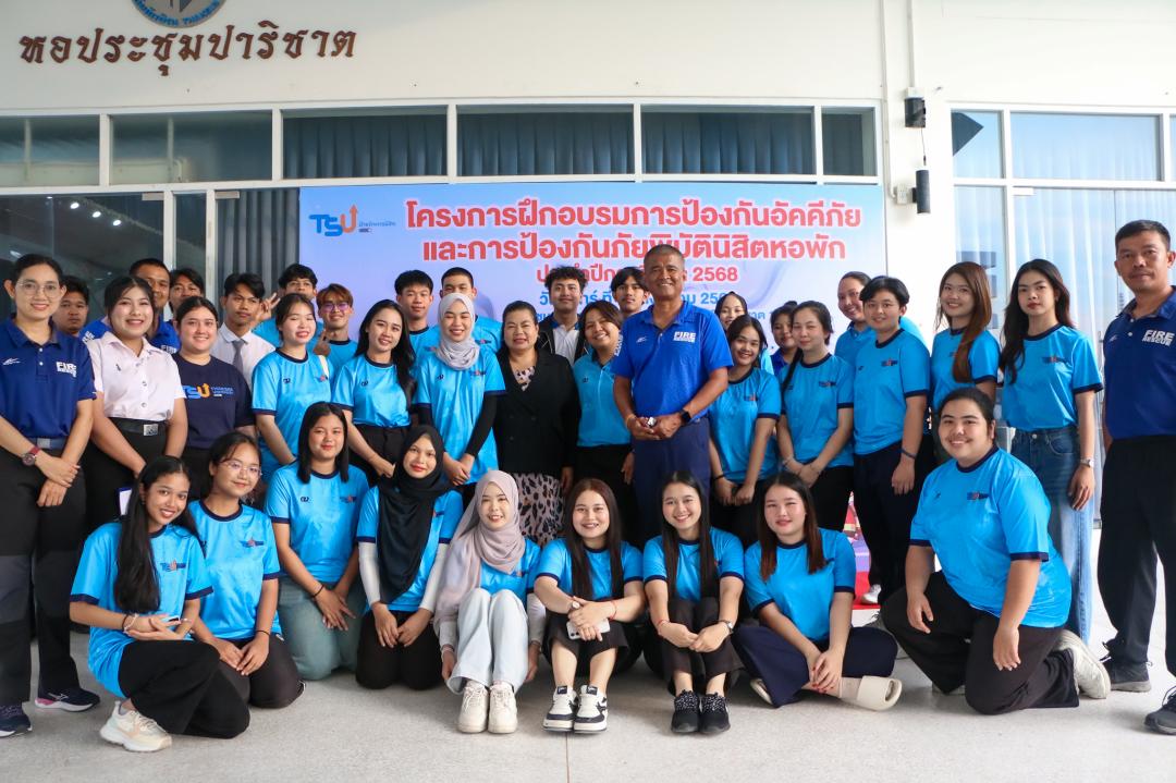ฝ่ายกิจการนิสิต มหาวิทยาลัยทักษิณ จัดโครงการฝึกอบรมการป้องกันอัคคีภัยและป้องกันภัยพิบัตินิสิตหอพัก ประจำปีการศึกษา 2568