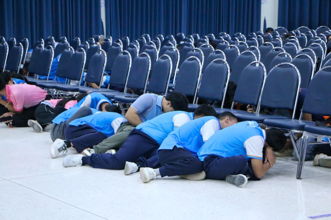ฝึกปฏิบัติการอพยพจากอาคารสูง ณ หอพักปาริชาต 1–3