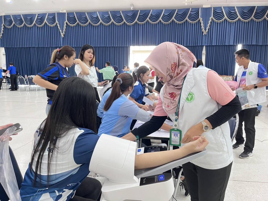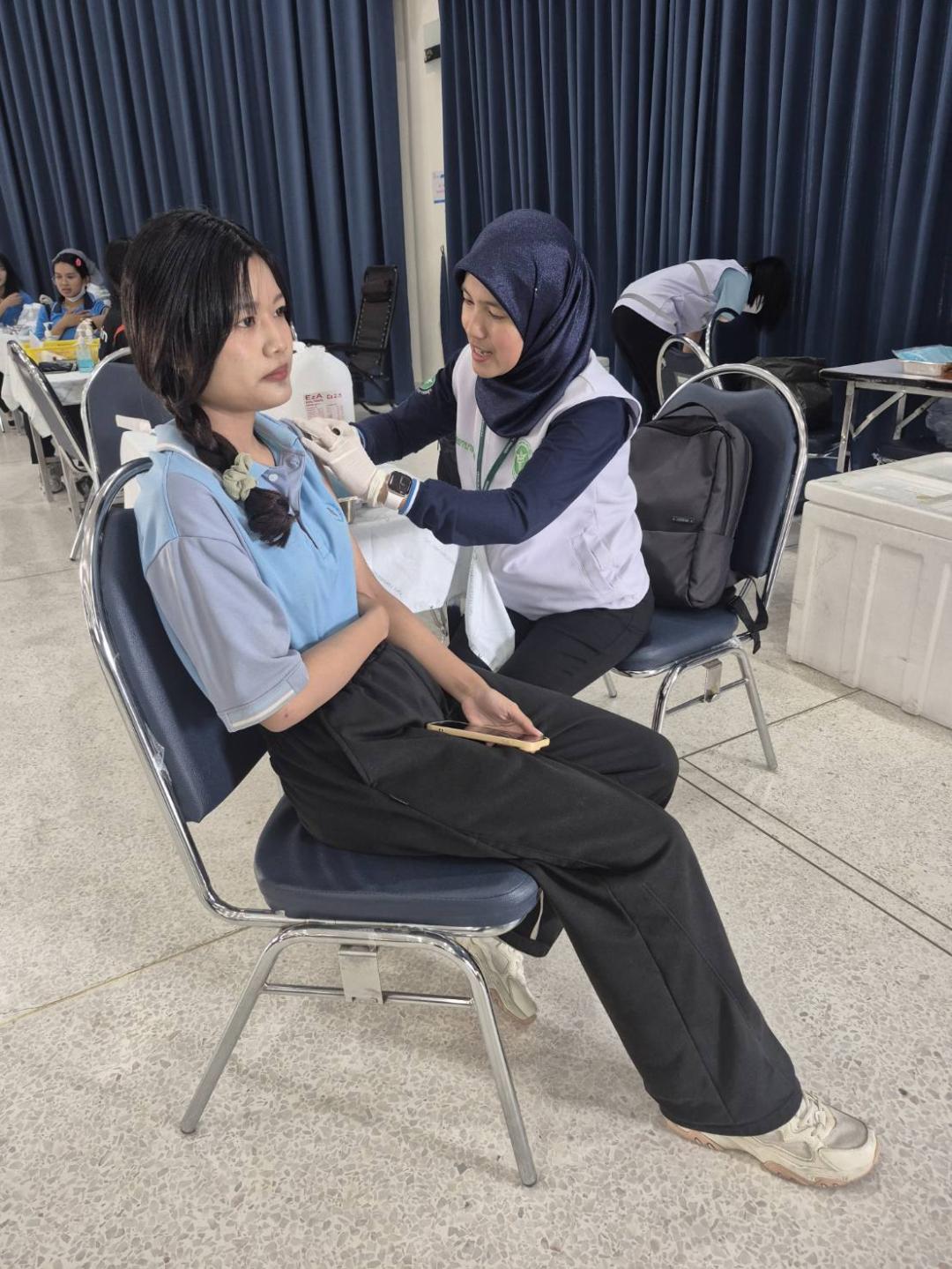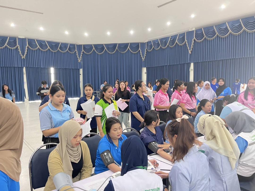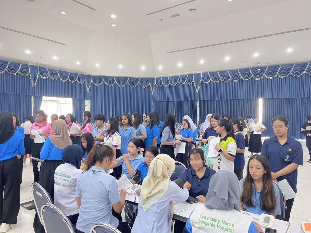 กิจกรรมฉีดวัคซีน HPV (ชนิด 9 สายพันธุ์) เพื่อสุขภาวะนิสิตหญิง รอบที่ 2 วันที่ 8 สิงหาคม 2568 เวลา 08.30 – 14.00 น. ณ หอประชุมปาริชาต มหาวิทยาลัยทักษิณ วิทยาเขตสงขลา ภารกิจสุขภาวะนิสิต โดย กลุ่มภารกิจบริการและสวัสดิการนิสิต ฝ่ายกิจการนิสิต มหาวิทยาลัยทักษิณ ร่วมกับ โรงพยาบาลสงขลา เดินหน้าสร้างเกราะป้องกันมะเร็งปากมดลูกให้กับนิสิตหญิง ดำเนินการฉีดวัคซีน HPV (ชนิด 9 สายพันธุ์) ดูแลโดยทีมบุคลากรทางการแพทย์อย่างใกล้ชิด ครอบคลุมนิสิตหญิง จำนวนทั้งสิ้น 555 คน