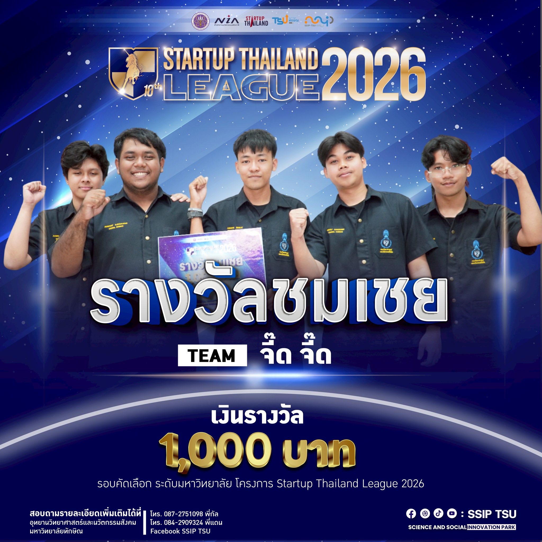 ???? ยินดีกับตัวแทนนิสิต TSU สู่เวที Startup Thailand League 2026 (ระดับภูมิภาค)