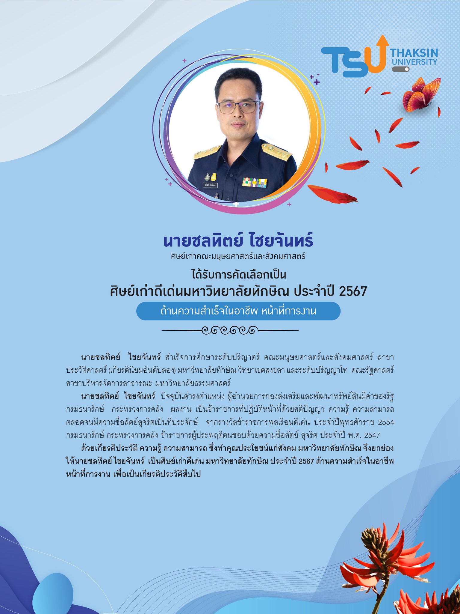 1. นายชลทิตย์ ไชยจันทร์ ศิษย์เก่าคณะมนุษยศาสตร์และสังคมศาสตร์