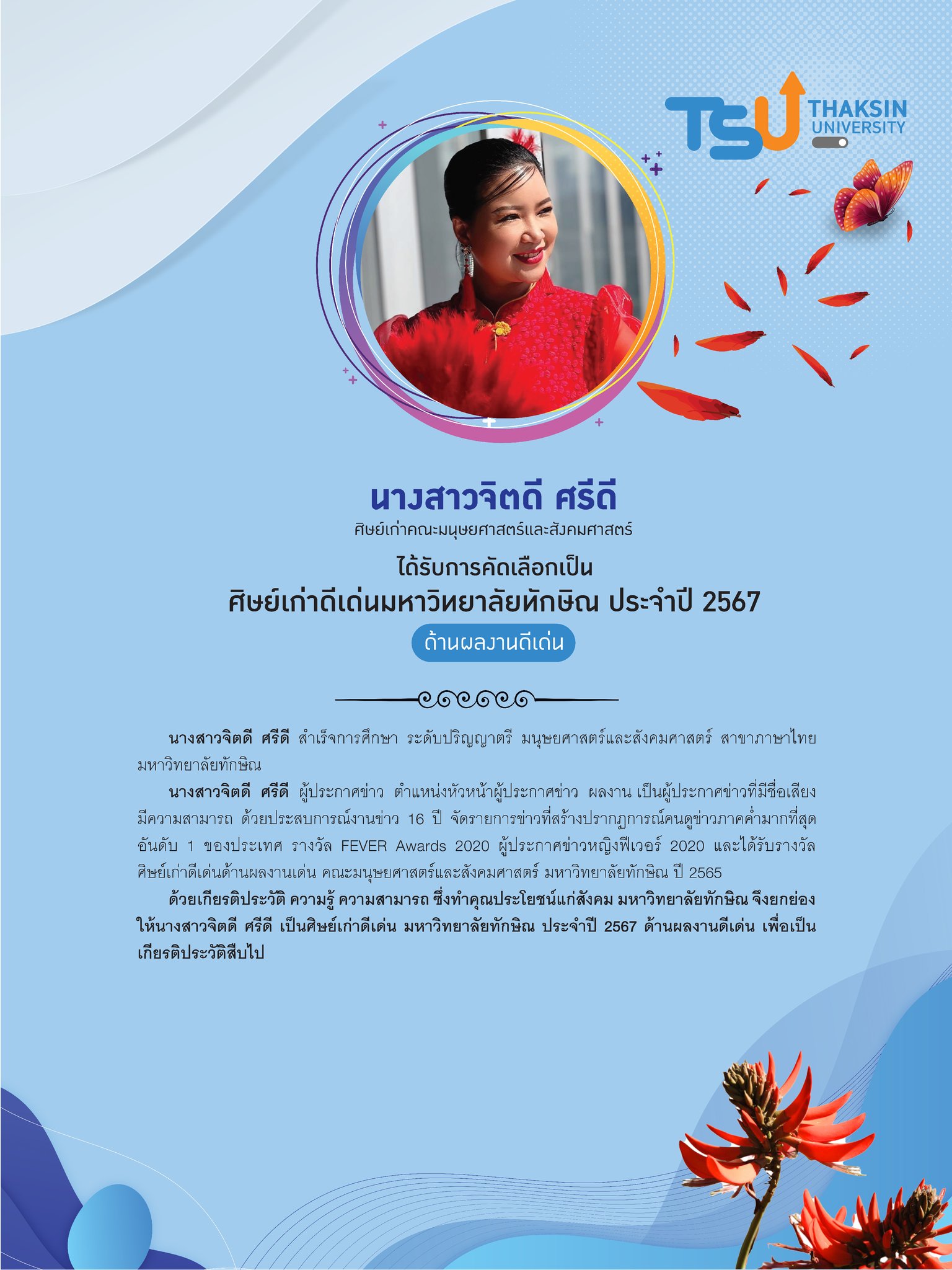 2. นางสาวจิตดี ศรีดี ศิษย์เก่าคณะมนุษยศาสตร์และสังคมศาสตร์