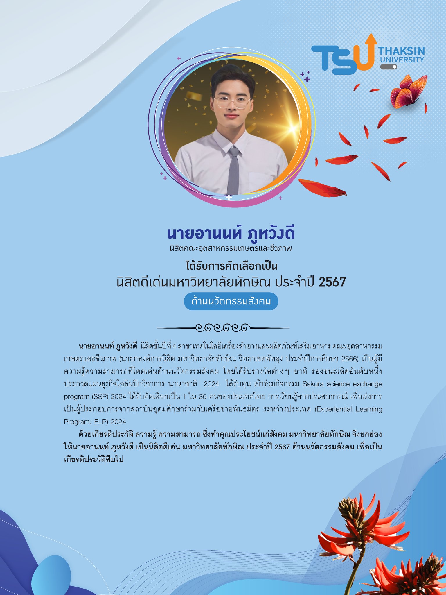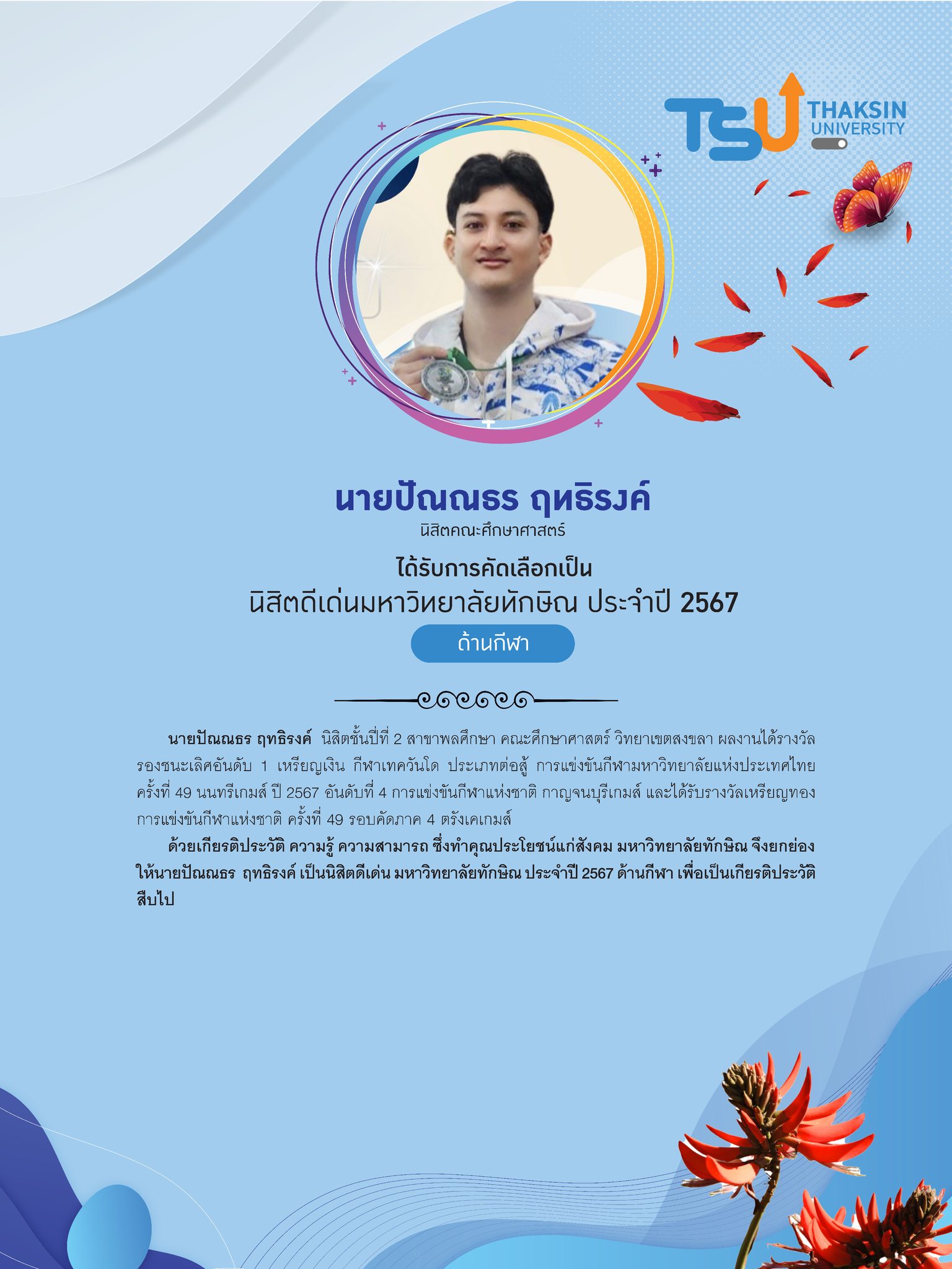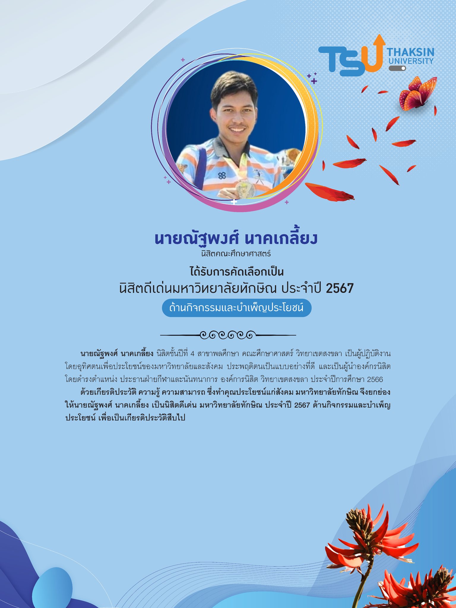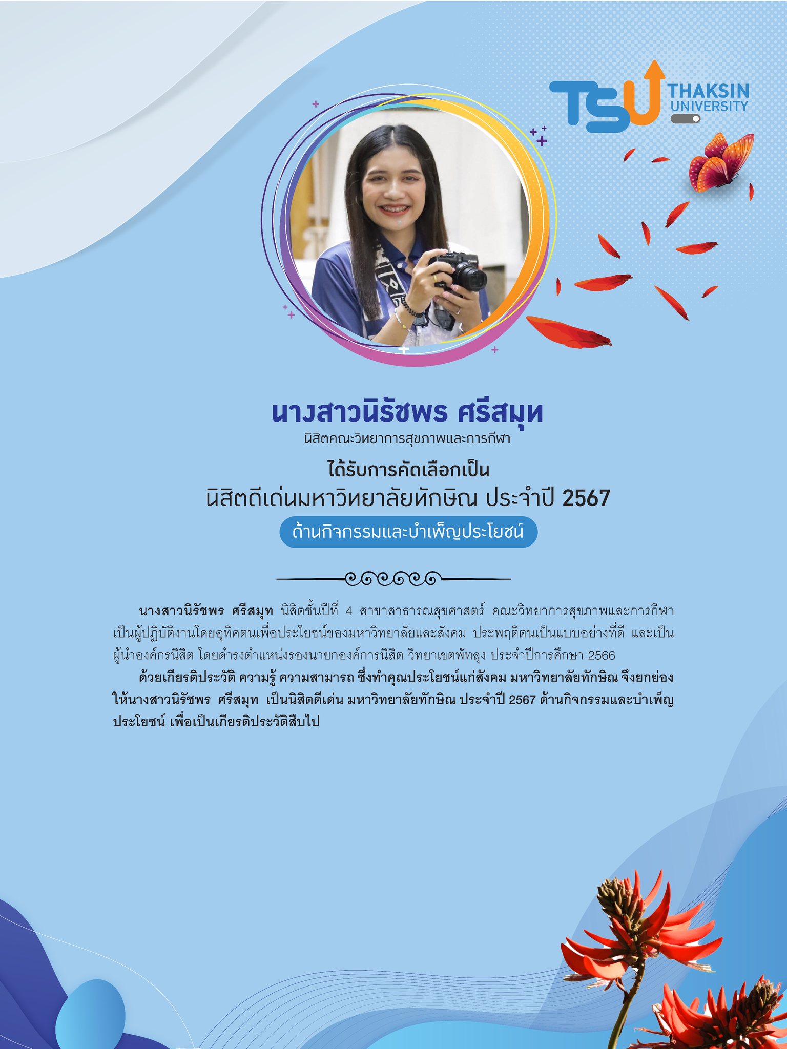 นิสิตดีเด่นมหาวิทยาลัยทักษิณ ประจำปี 2567